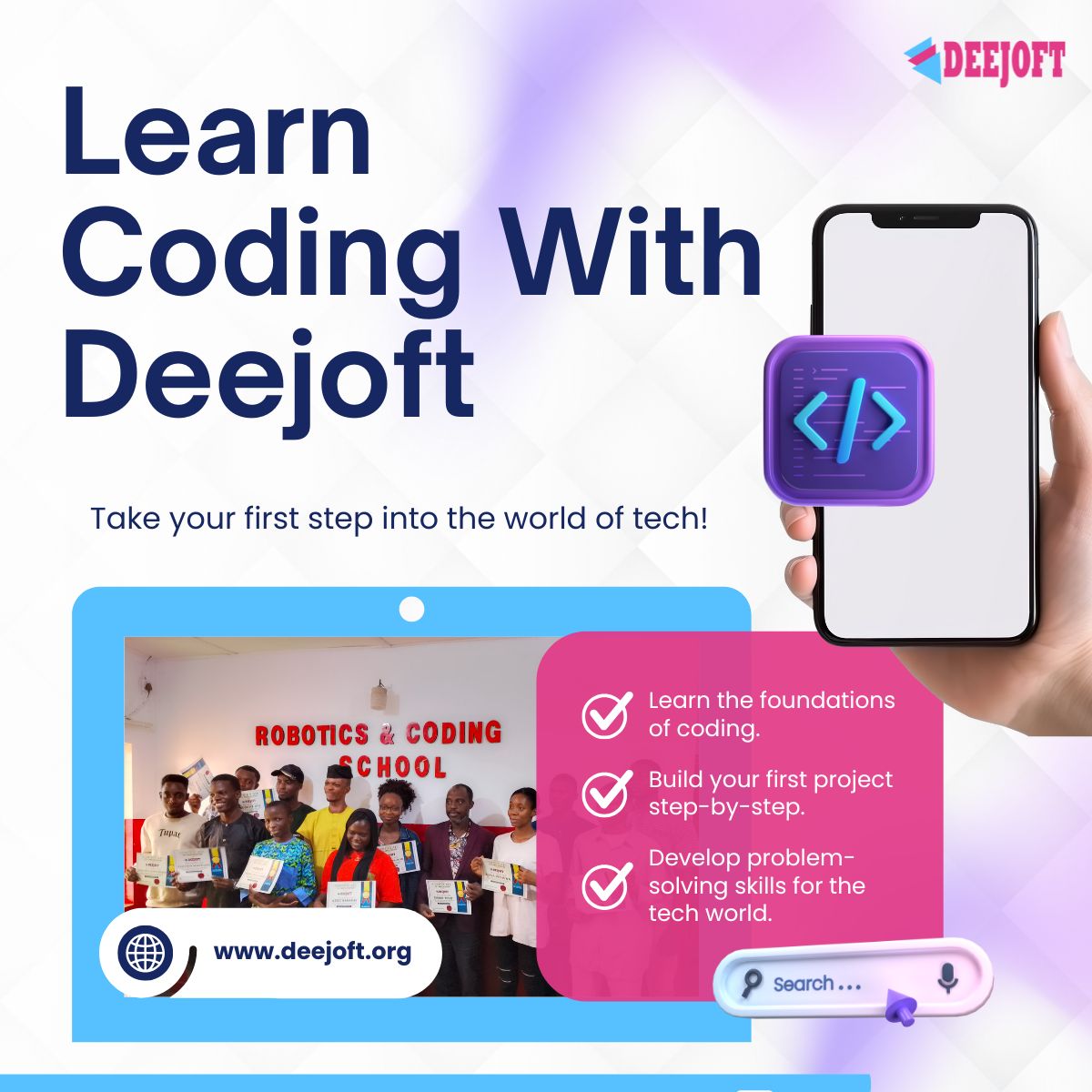 Learning with DEEJOFT does not just provide knowledge it also opens up rooms for job opportunities and gives you a space to fit into the modern world of tech